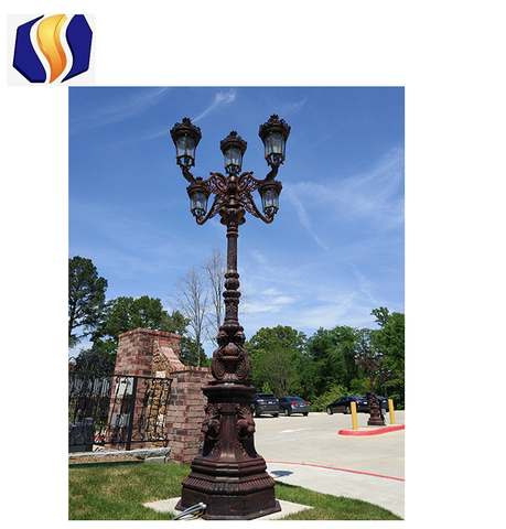 เสาไฟถนนเหล็กหล่อโบราณโคมไฟในสวนแบบหล่อเสาการหล่อใช้ในสวน